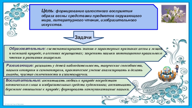 образа весны средствами предметов окружающего мира, литературного чтения, изобразительного искусства.