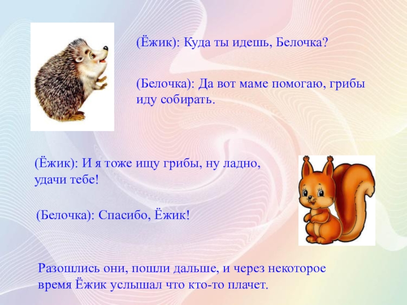 (Белочка): Здравствуй, Ёжик!