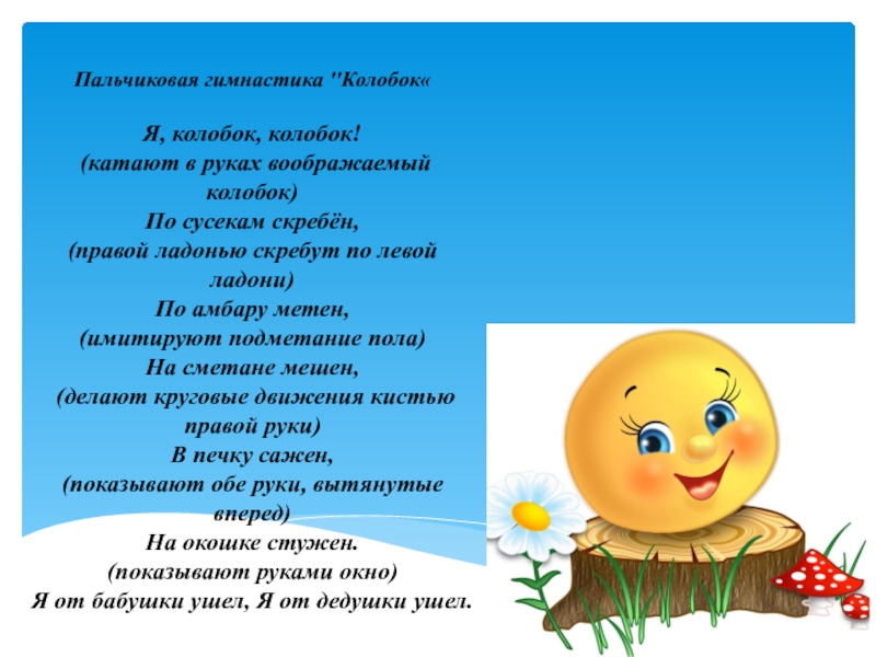 Слайд 10Пальчиковая гимнастика "Колобок«