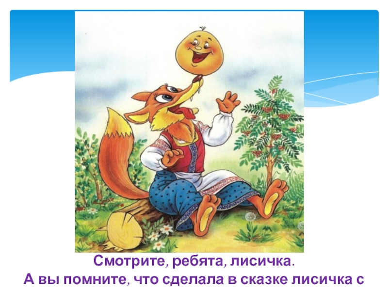 Смотрите, ребята, лисичка. А вы помните, что сделала в сказке лисичка с колобком?