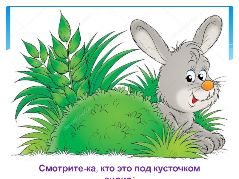 Слайд 4Смотрите-ка, кто это под кусточком сидит?