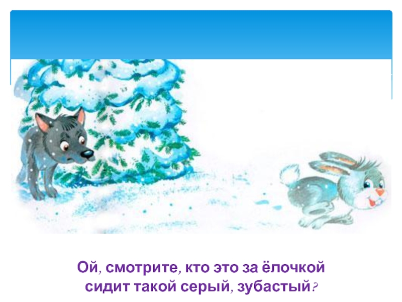 Слайд 6Ой, смотрите, кто это за ёлочкой сидит такой серый, зубастый?