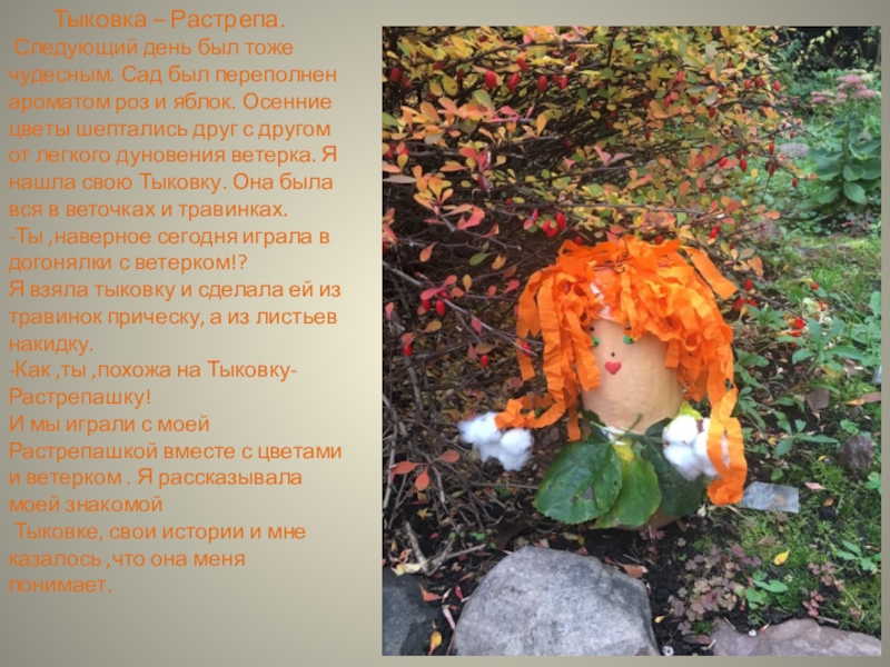 Тыковка – Растрепа. Следующий день был тоже чудесным. Сад был переполнен ароматом роз и яблок. Осенние цветы