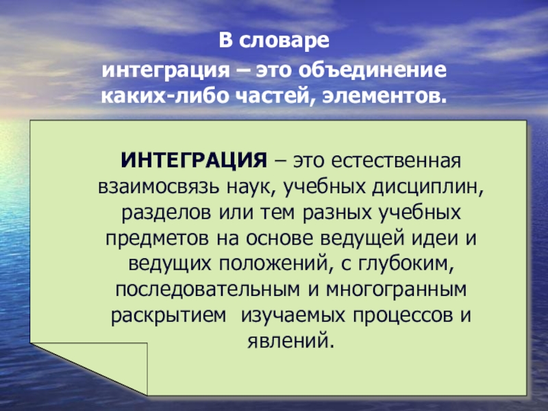 утверждает, что интеграция – это единство предметности и межпредметности.
