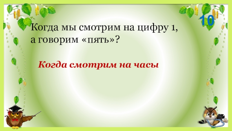 10Когда смотрим на часыКогда мы смотрим на цифру 1, а говорим «пять»?