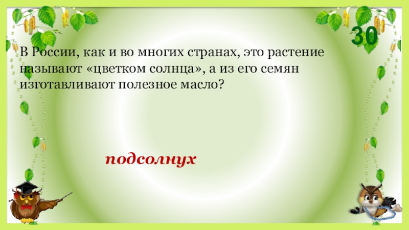 30подсолнухВ России, как и во многих странах, это растение называют «цветком солнца», а из его семян изготавливают