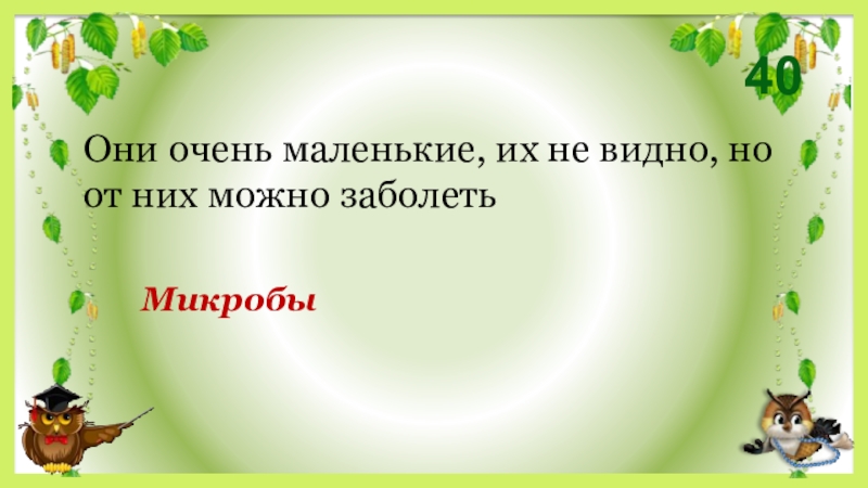 40МикробыОни очень маленькие, их не видно, но от них можно заболеть
