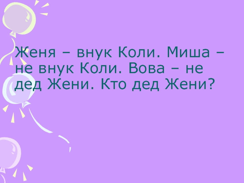 Слайд 21Женя – внук Коли. Миша – не внук Коли. Вова –