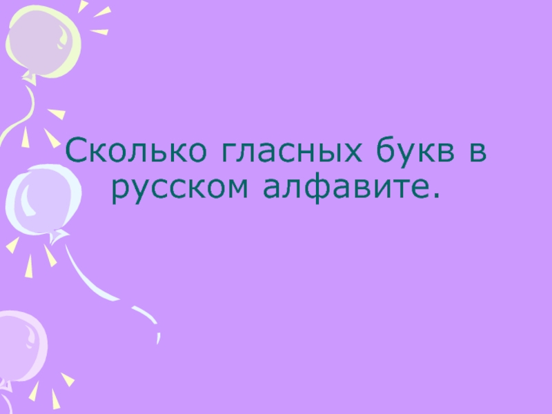 Слайд 2Сколько гласных букв в русском алфавите.