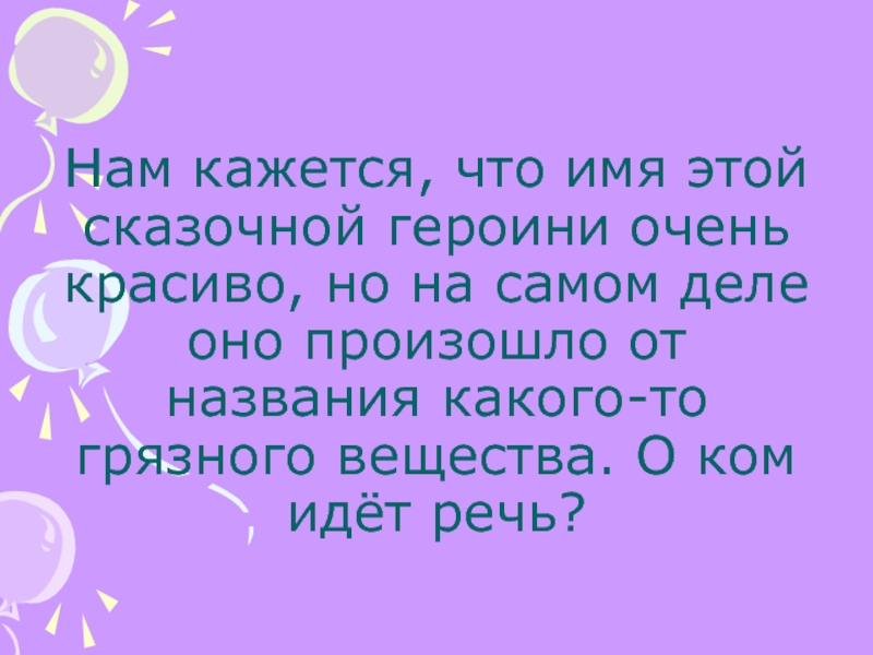 Слайд 13Нам кажется, что имя этой сказочной героини очень красиво, но на
