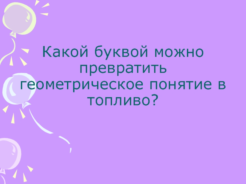 Слайд 19Какой буквой можно превратить геометрическое понятие в топливо?