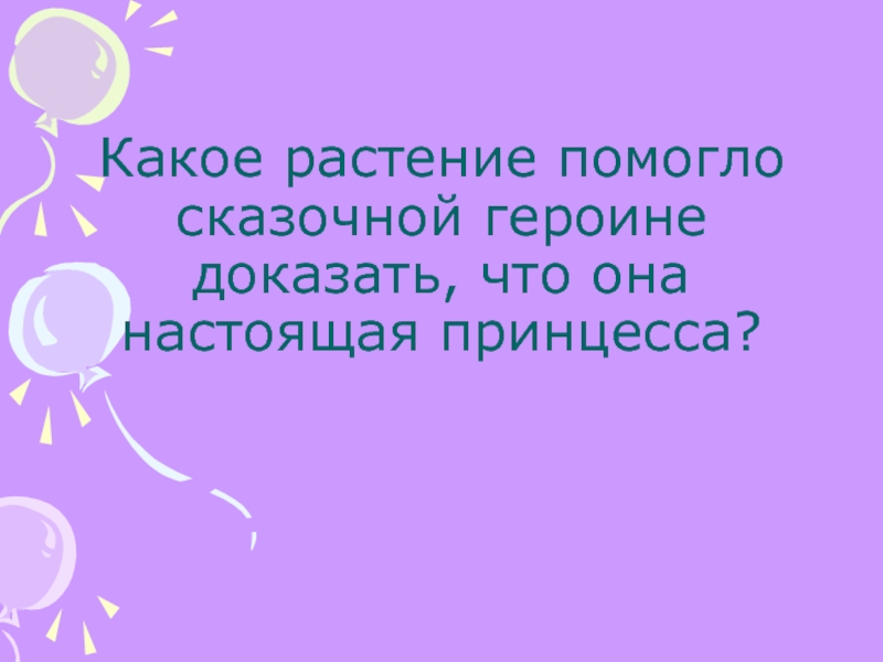 Слайд 10Какое растение помогло сказочной героине доказать, что она настоящая принцесса?