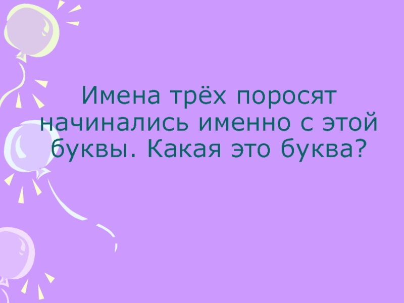 Слайд 12Имена трёх поросят начинались именно с этой буквы. Какая это буква?