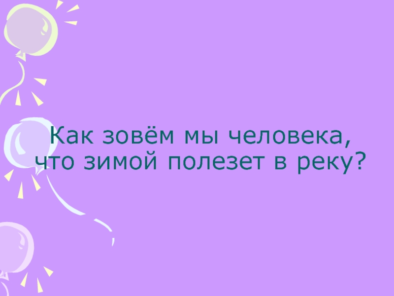 Слайд 4Как зовём мы человека, что зимой полезет в реку?