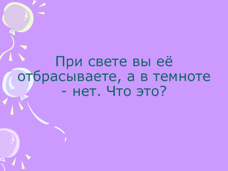 Слайд 18При свете вы её отбрасываете, а в темноте - нет. Что