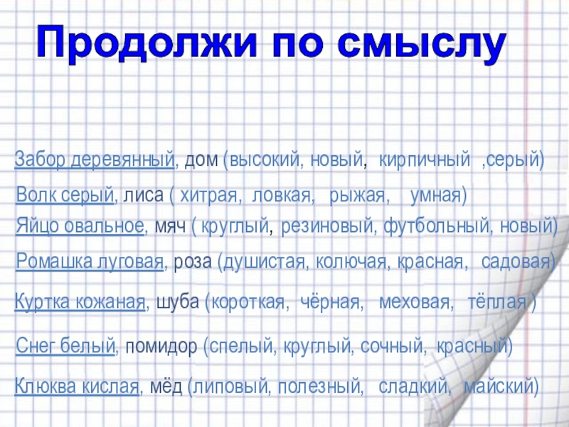 Продолжи по смыслу