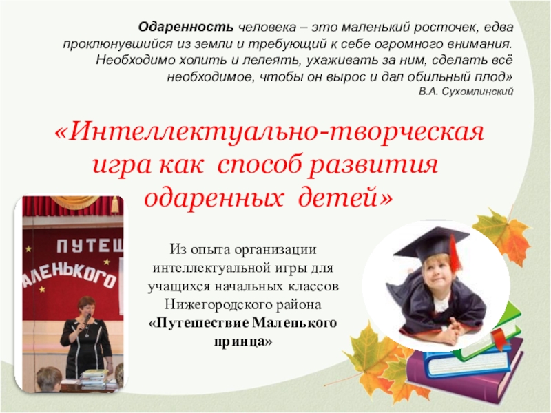 Из опыта организации интеллектуальной игры для учащихся начальных классов Нижегородского района «Путешествие Маленького принца»