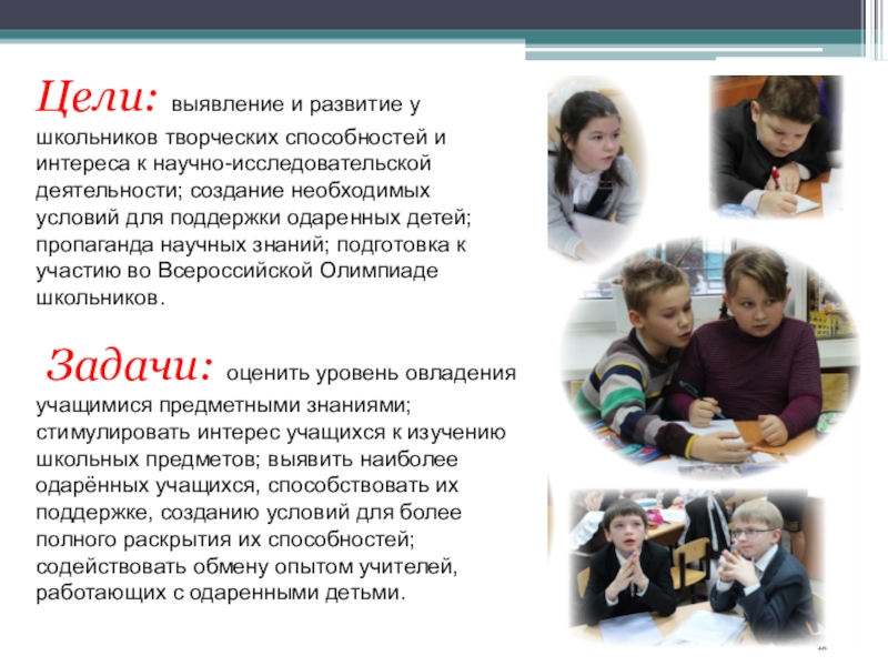 «В ближайшие годы в России будет выстроена разветвленная система поиска, поддержки и сопровождения талантливых детей. Необходимо развивать творческую среду для выявления особо одаренных ребят в каждой общеобразовательной школе. Требуется развивать систему олимпиад и конкурсов школьников. Для ребят, проявивших свои таланты в различных областях деятельности, организовывать слеты, летние и зимние школы, конференции, семинары и другие мероприятия, поддерживающие сформировавшуюся одаренность».
