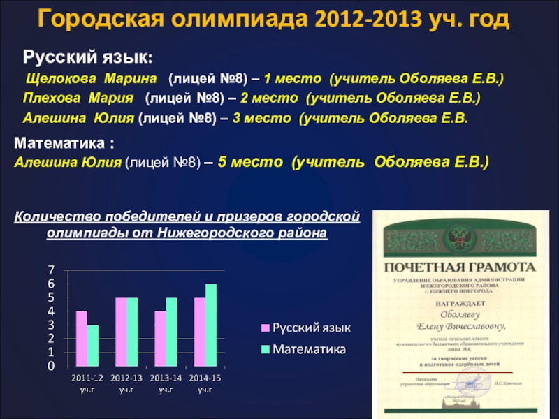 Алешина Юлия (лицей №8) – 5 место (учитель Оболяева Е.В.)