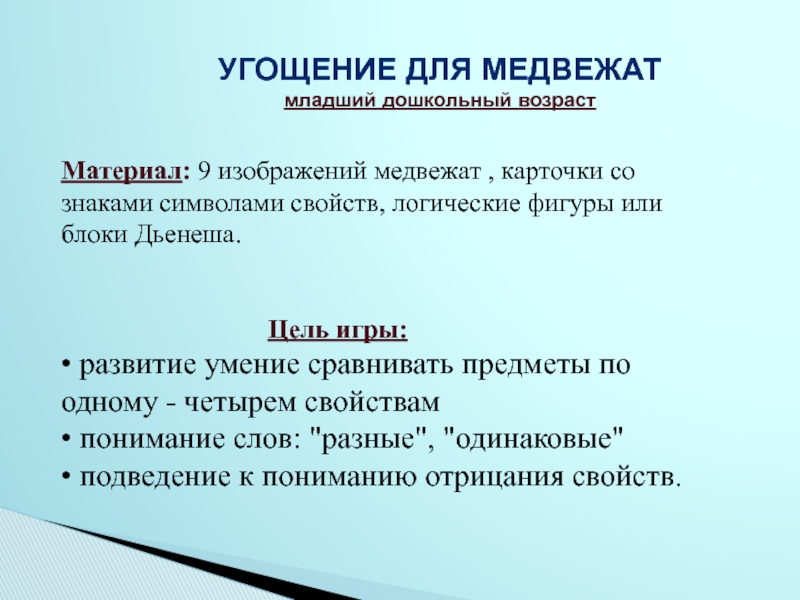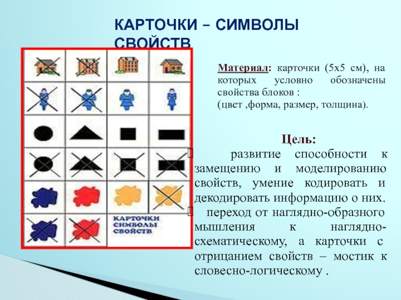 переход от наглядно-образного мышления к наглядно-схематическому, а карточки с отрицанием свойств – мостик к словесно-логическому .