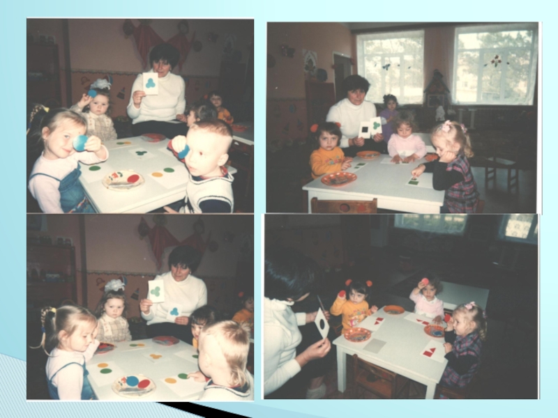 ( 6 квадратов, 6 прямоуг-ков, 6 треугольников, 6 кругов), отличающихся цветом ( красный, синий, желтый) и размером (большой, маленький).