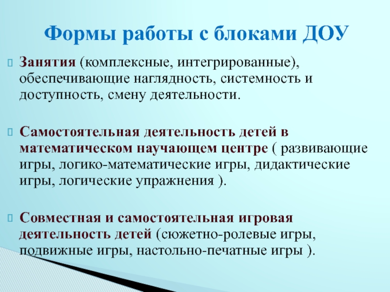 Формы работы с блоками ДОУ