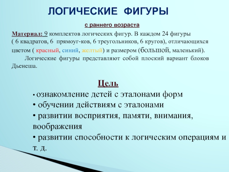 Логические фигуры представляют собой плоский вариант блоков Дьенеша.