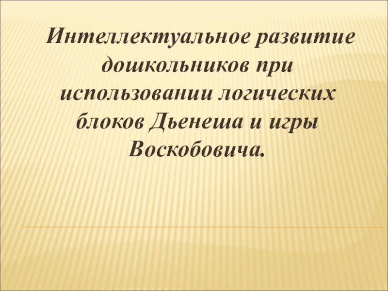 Интеллектуальное развитие дошкольников при использовании логических блоков Дьенеша и игры