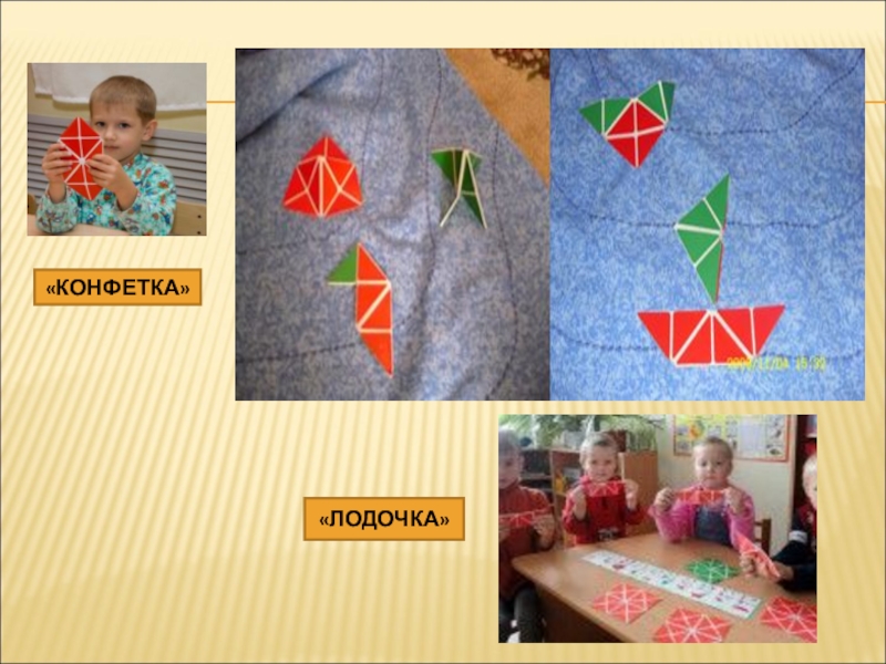«Сложи квадрат» (пополам разными способами). Какие фигуры ты узнаешь? Сложи квадрат, чтобы получился большой, маленький треугольник, прямоугольник, квадрат;