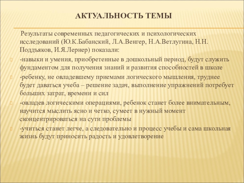 Результаты современных педагогических и психологических исследований (Ю.К.Бабанский,