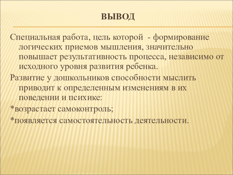 Специальная работа, цель которой - формирование логических приемов мышления, значительно повышает