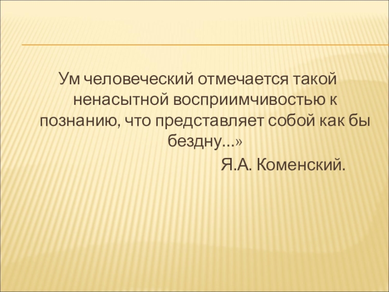 Слайд 2Ум человеческий отмечается такой ненасытной восприимчивостью к познанию, что представляет собой