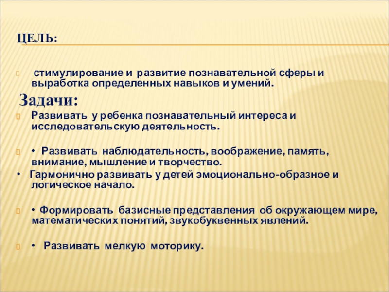 стимулирование и развитие познавательной сферы и выработка определенных навыков и