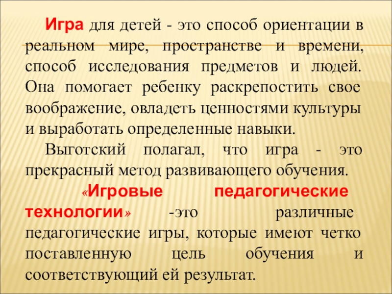 Выготский полагал, что игра - это прекрасный метод развивающего обучения.