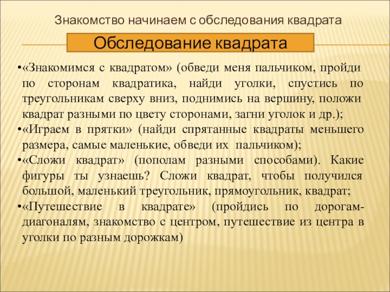 Знакомство начинаем с обследования квадрата
