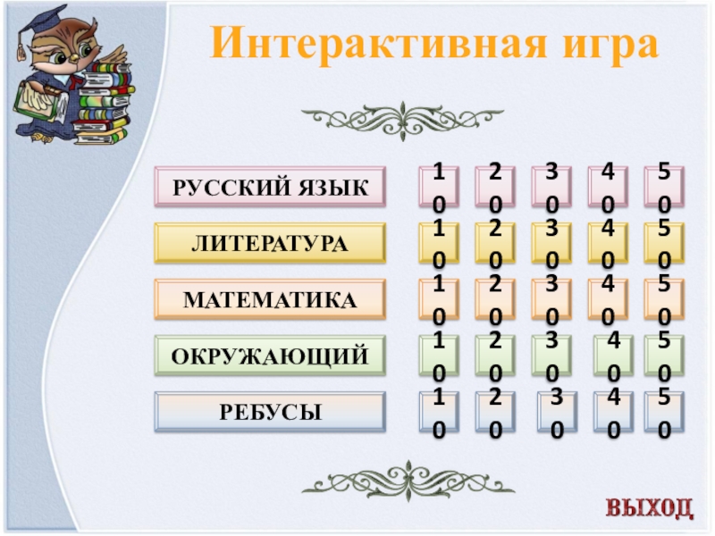 Автор игры : Плохих Ольга Геннадьевна, учитель начальных классов МАОУ СОШ №8 г. Ишима