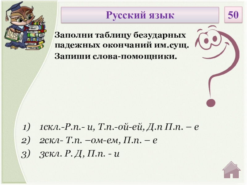Заполни таблицу безударных падежных окончаний им.сущ.