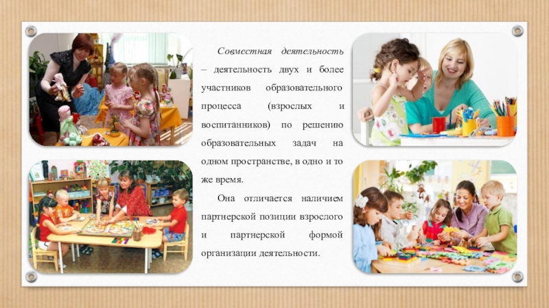 Слайд 2Совместная деятельность – деятельность двух и более участников образовательного процесса (взрослых