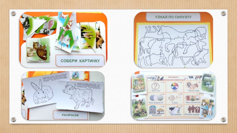 игры «Найди пару», «Найди маму», «Чья тень?», «Узнай по силуэту», «Собери картинку»,