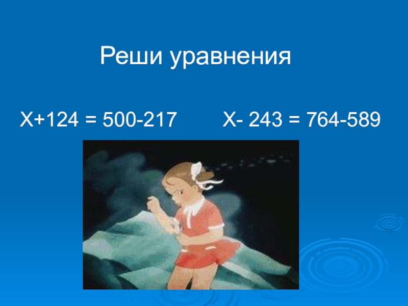 Реши уравненияХ+124 = 500-217    Х- 243 = 764-589