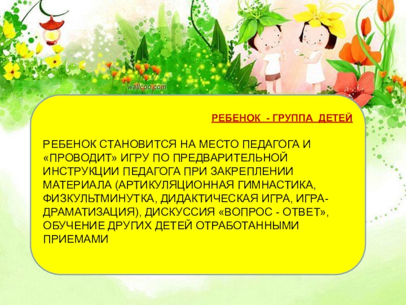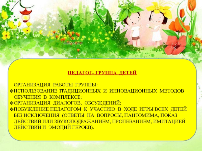 Слайд 12ПЕДАГОГ- ГРУППА ДЕТЕЙ