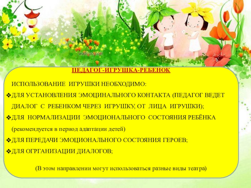 Слайд 13ПЕДАГОГ-ИГРУШКА-РЕБЕНОК