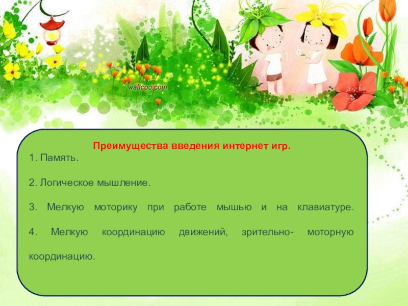 Слайд 6Преимущества введения интернет игр.