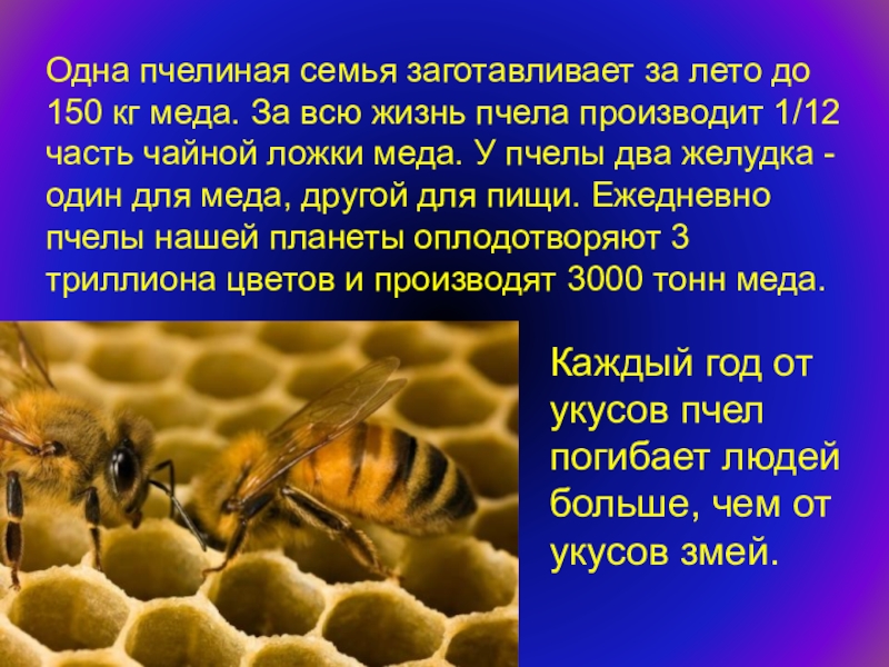 Каждый год от укусов пчел погибает людей больше, чем от укусов змей.