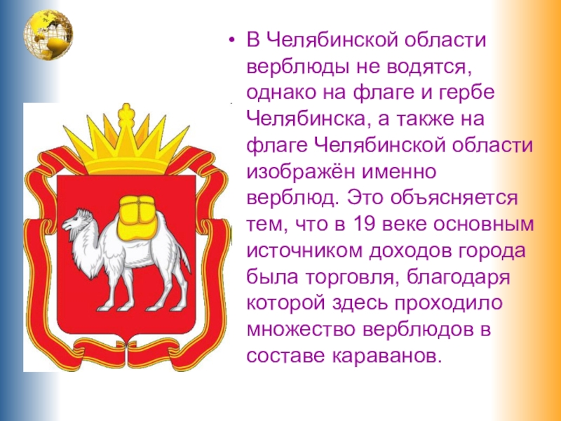 Слайд 11В Челябинской области верблюды не водятся, однако на флаге и гербе