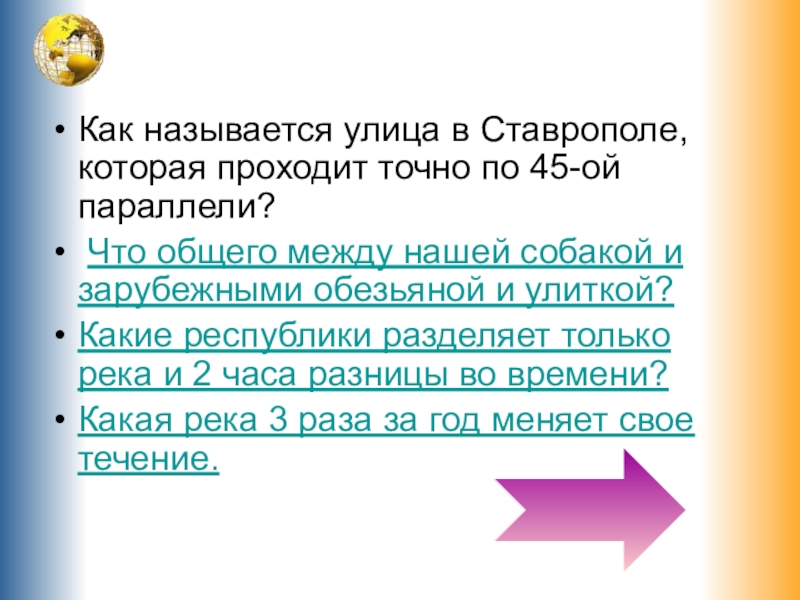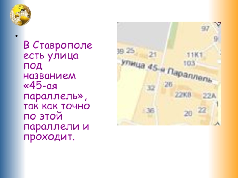 Слайд 4Как называется улица в Ставрополе, которая проходит точно по 45-ой параллели?