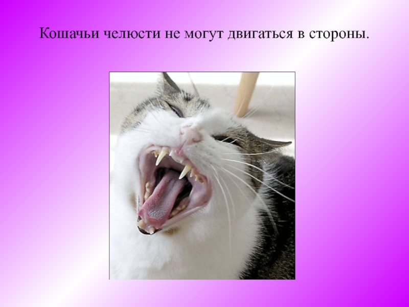 Слайд 10Кошачьи челюсти не могут двигаться в стороны.