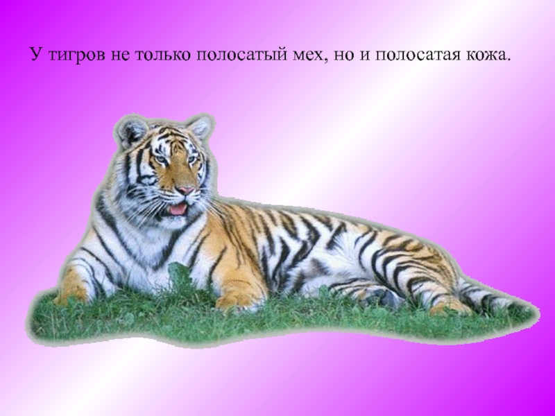 Слайд 3У тигров не только полосатый мех, но и полосатая кожа.