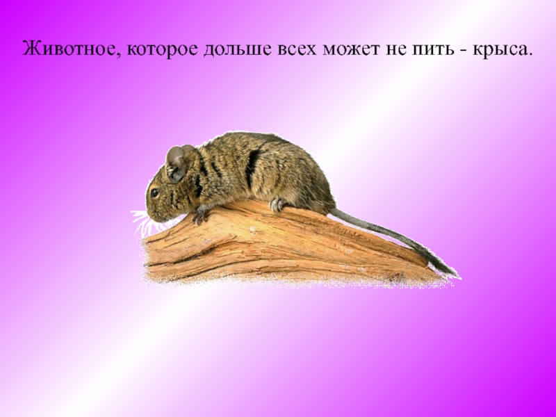 Слайд 13Животное, которое дольше всех может не пить - крыса.