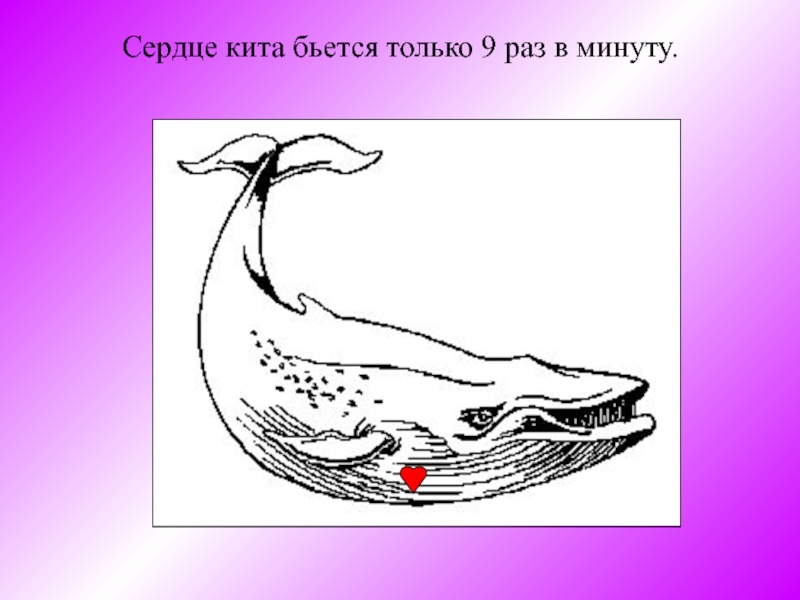 Слайд 5Сердце кита бьется только 9 раз в минуту.